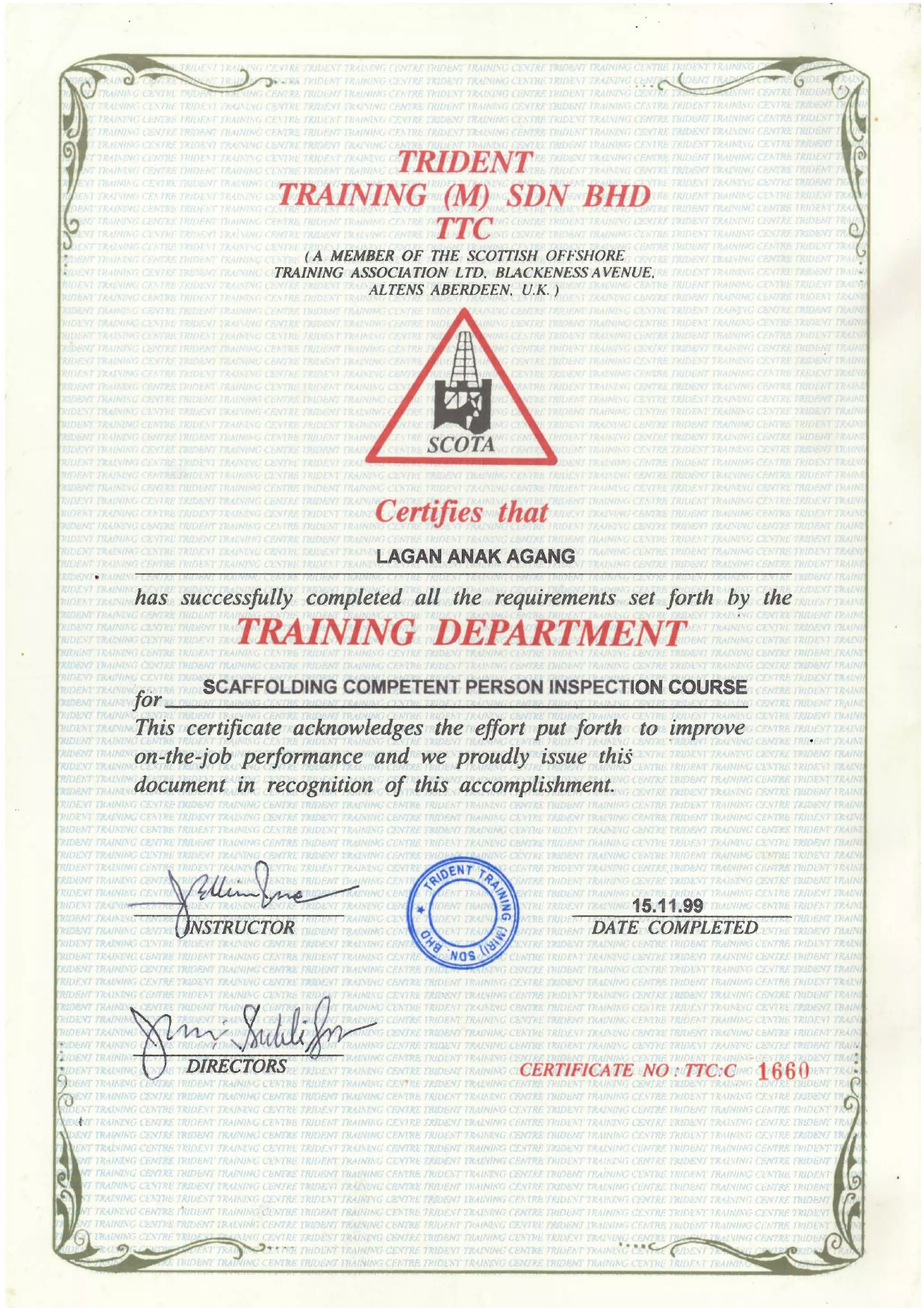 Supervisory Safety Workshop Certificate