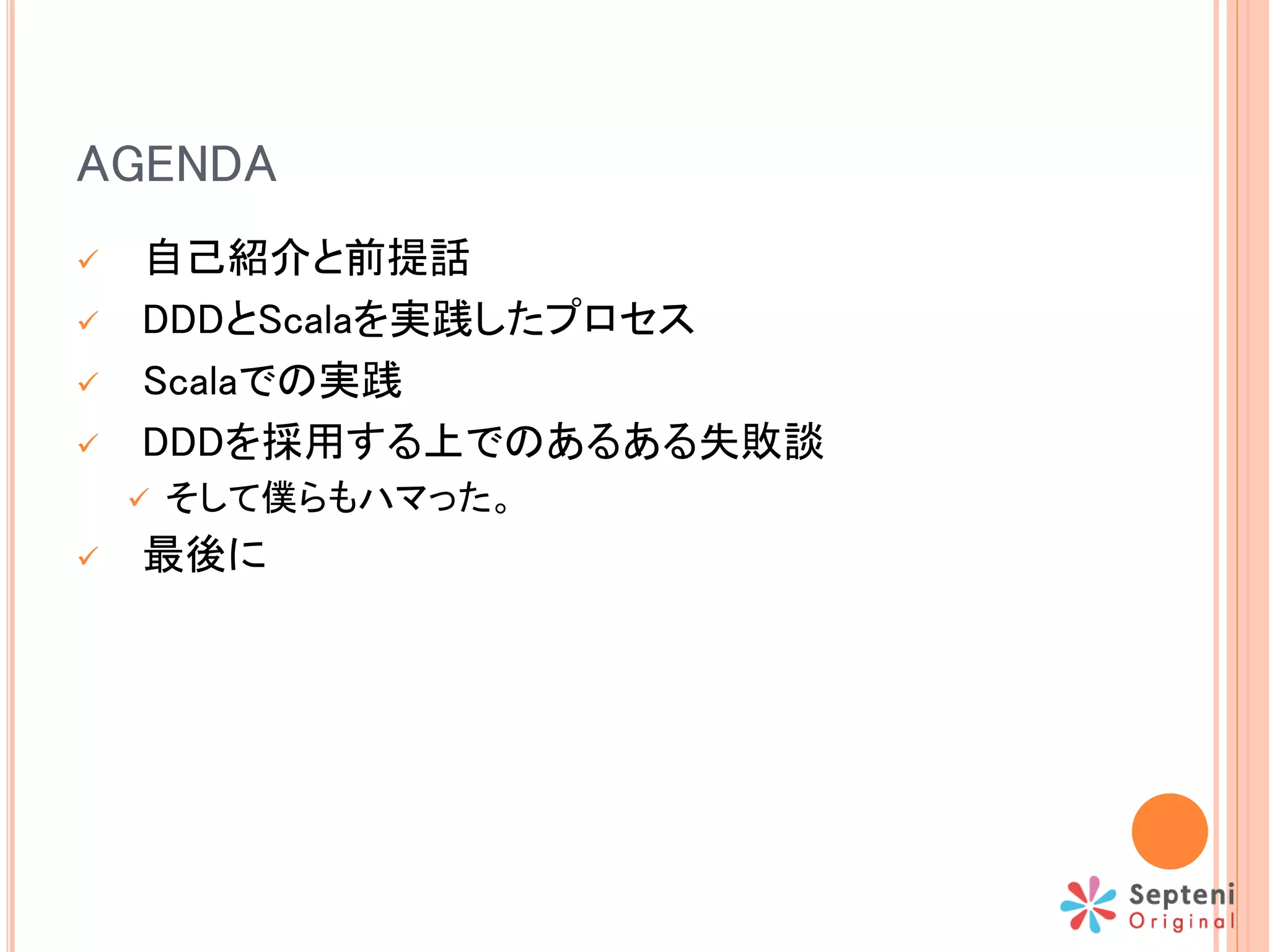 弊社(SepteniOriginal)にてDDDを実践したはじめの一歩のご紹介です。 in English This is first step of Domain Driven Design in my company.