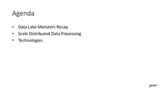 The document discusses scalable data pipeline challenges and strategies to handle big data, focusing on technologies like AWS and Spark. It highlights the importance of effective data management practices such as partitioning, compression, and choosing the right storage formats to optimize workloads. Additionally, it emphasizes building resilience within architecture to accommodate future data volumes and associated risks.