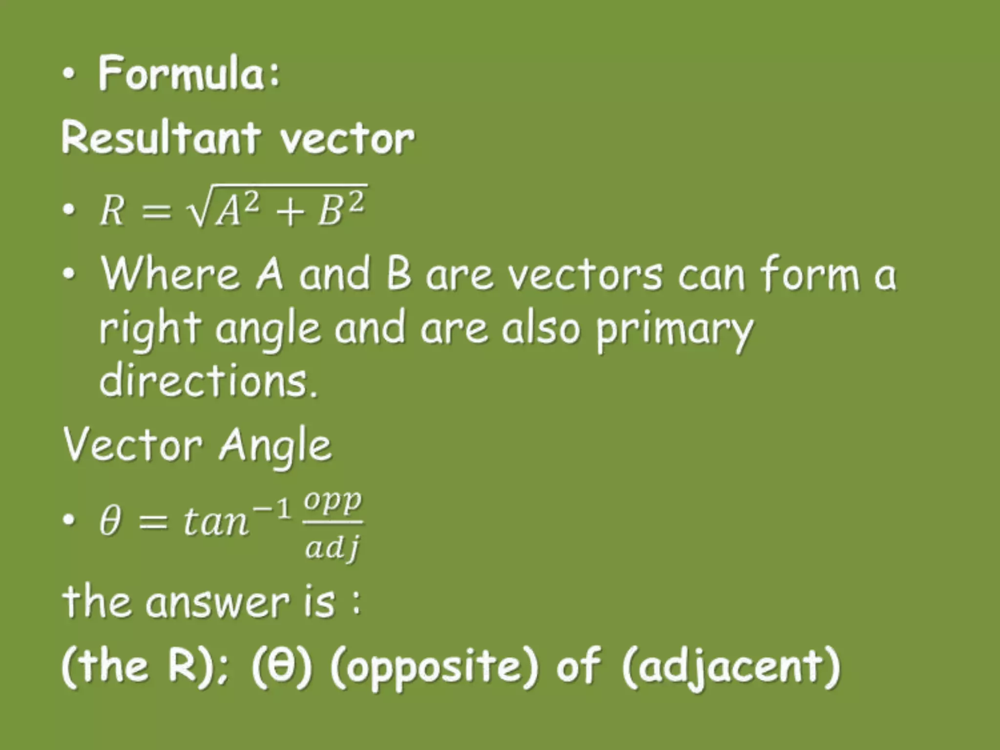 or for adding vectors that are not at 90-