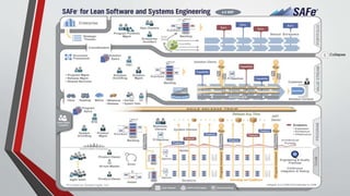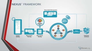 This document summarizes five approaches for scaling agile frameworks at the enterprise level: Scrum of Scrums, Large Scale Scrum (LeSS), Disciplined Agile Delivery (DAD), Scaled Agile Framework (SAFe), and Nexus. It provides high-level overviews of each approach, focusing on their strengths, weaknesses, and differences at the portfolio and enterprise levels. Key selection factors for adopting a scaling approach are discussed, such as organizational complexity, delivery cadence, tools, and access to qualified training.