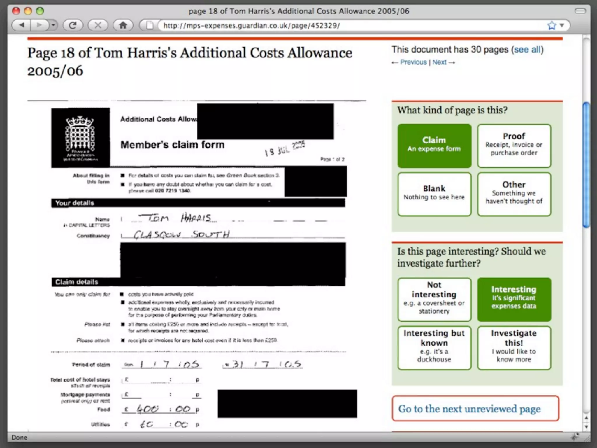 This document summarizes the steps taken to optimize the performance of a website for reviewing parliamentary expenses. Initially, querying for unreviewed pages was causing high CPU usage on the database server. To address this, the count of unreviewed pages was cached in Memcached, reducing CPU usage. Other optimizations included migrating the database to InnoDB, adding a "next" button that redirects to a random unreviewed page, and caching the list of unreviewed page IDs in Memcached for faster random access. During a future scale issue, Redis will be used instead of Memcached. Putting the site in read-only mode also helped during a period of high load.