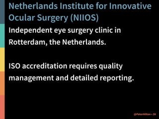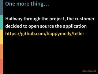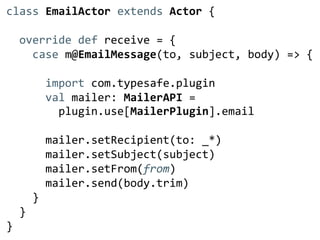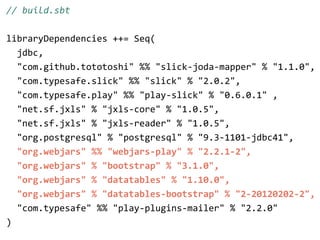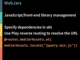 The document describes two case studies of using Play and Scala to build business web applications. The first case study is of Happy Melly, a network of businesses focused on worker happiness. The application was built using Play 2.1/Scala and deployed to Cloudbees with continuous delivery. The second case study is of NIIOS, an eye surgery clinic that needed a quality management system to replace spreadsheets. Their application was also built with Play/Scala along with other technologies like Slick and Bootstrap. Both projects benefited from Scala and the Play framework in building the applications faster and with fewer resources than alternative approaches.