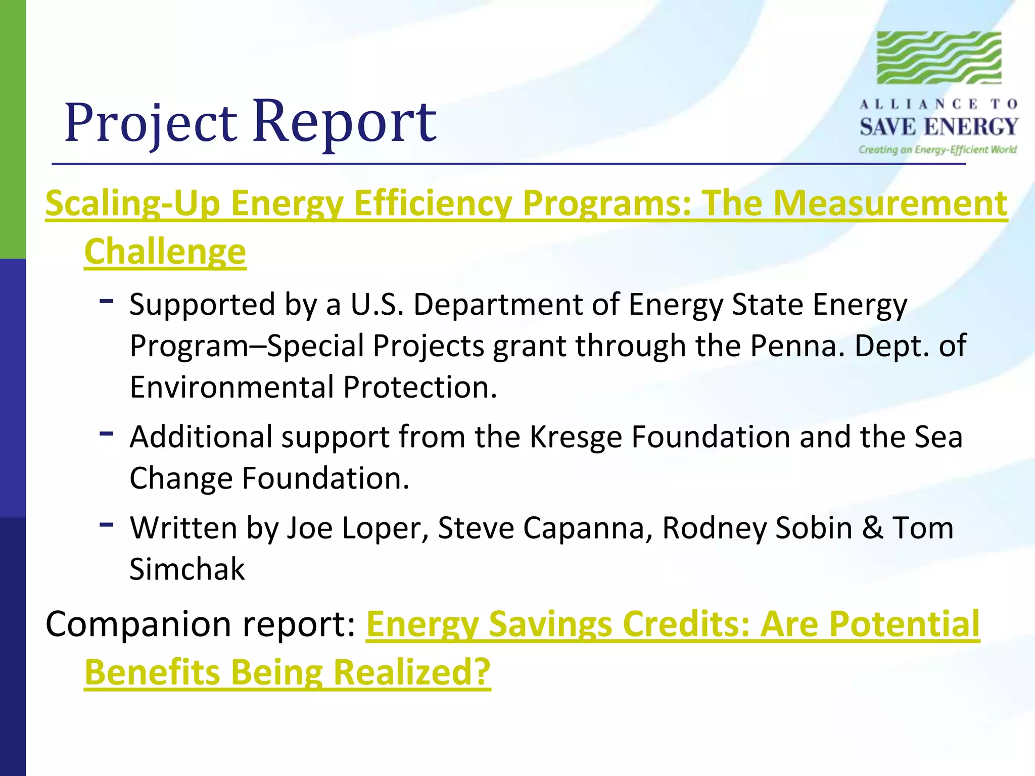 This document discusses the challenges of evaluating, monitoring, and verifying energy savings from energy efficiency programs as investment in these programs increases. It outlines differing views on the current state of EM&V and challenges such as estimating savings in the absence of a direct measurement and accounting for factors like free riders. It recommends improving transparency, increasing consistency between states and programs, and developing regional and national EM&V protocols and standards to enhance the credibility and reliability of energy savings measurements.