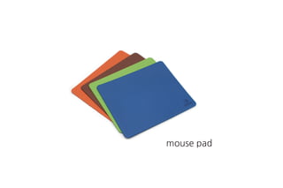This document proposes ideas for improving a mouse pad by making it more portable and comfortable. It suggests designing a portable wrist cushion in the shape of an armband or neck cushion that provides padding and support without adding bulk like a traditional cushion pad. The goal is to create something lightweight and convenient for users.