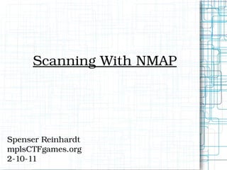 Nmap is an open source tool that scans networks to identify devices, services, and operating systems. It works by crafting custom IP packets with different flags using raw sockets to elicit responses that provide information not otherwise available. Nmap can perform various types of scans, identify hosts and services, detect firewalls and IDS, and determine operating systems through detailed analysis of responses. It provides flexible output options and techniques for advanced scanning, packet alteration, and timing control.