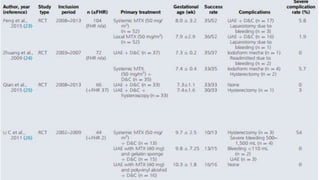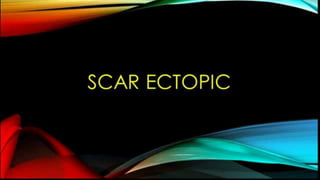 The document provides an in-depth overview of ectopic pregnancy, particularly focusing on caesarean scar pregnancy (CSP), its incidence, risk factors, diagnosis, and management options. CSP occurs when an embryo implants in the myometrium at the site of a previous caesarean section, with increasing prevalence linked to rising caesarean rates and enhanced diagnostic techniques. Various treatment methodologies, including medical and surgical options, are discussed to prevent severe complications and preserve fertility.