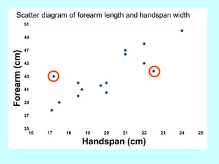 The document explores the concept of correlation between variables, emphasizing the use of scatter diagrams to visualize relationships and the importance of the line of best fit (LOBF) in making predictions. It discusses the differences between interpolation (predicting within the data range) and extrapolation (predicting outside the data range), along with activities to practice plotting and analyzing data. Additionally, it highlights common logical fallacies in correlational arguments and encourages critical thinking regarding causation and correlation.