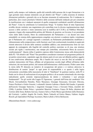 Il documento analizza i Nuclei Armati Rivoluzionari (N.A.R.) e la Loggia P2, evidenziando le loro strategie e interconnessioni con il potere politico e criminale in Italia tra gli anni '70 e '80. I N.A.R. utilizzarono la violenza e il terrrorismo per sostenere ideali fascisti, mentre la Loggia P2 cercava di infiltrarsi nelle istituzioni per riscrivere le regole del sistema politico italiano a proprio favore. Entrambi i gruppi rappresentano tentativi di sovversione dell'ordine democratico, anche se con approcci distinti e obiettivi a lungo termine simili.