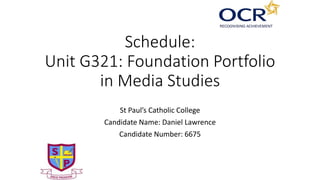Daniel Lawrence created a music magazine called "Riff" for his AS Media Studies course. Over the course of several months, he designed preliminary pages including a front cover and contents page to practice layout and editing skills in Photoshop. He also created a double page spread with an interview, using consistent fonts, images, and color schemes. Finally, Daniel evaluated his magazine pages and felt he gained new skills in using Photoshop and magazine design conventions.