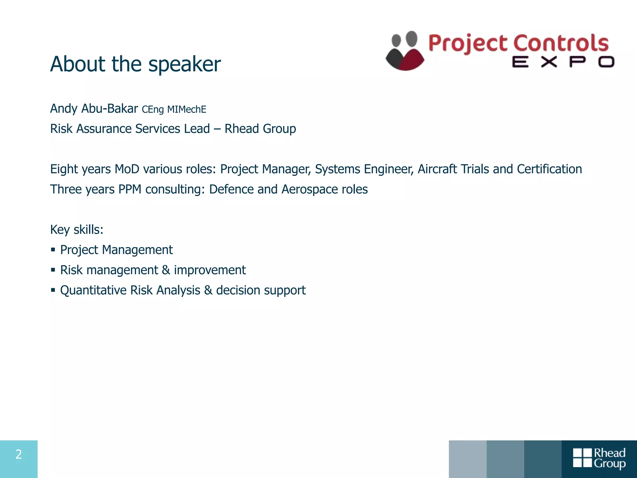 The document presents a detailed overview of schedule risk analysis, particularly for complex projects, highlighting its significance in establishing achievable project delivery targets and understanding potential outcomes. It covers the speaker's expertise, the analysis approach, and a case study illustrating the implementation of these techniques in a large public sector engineering project. Key elements include developing models, assessing risks, and ensuring quality evidence to support decision-making and enhance project monitoring.