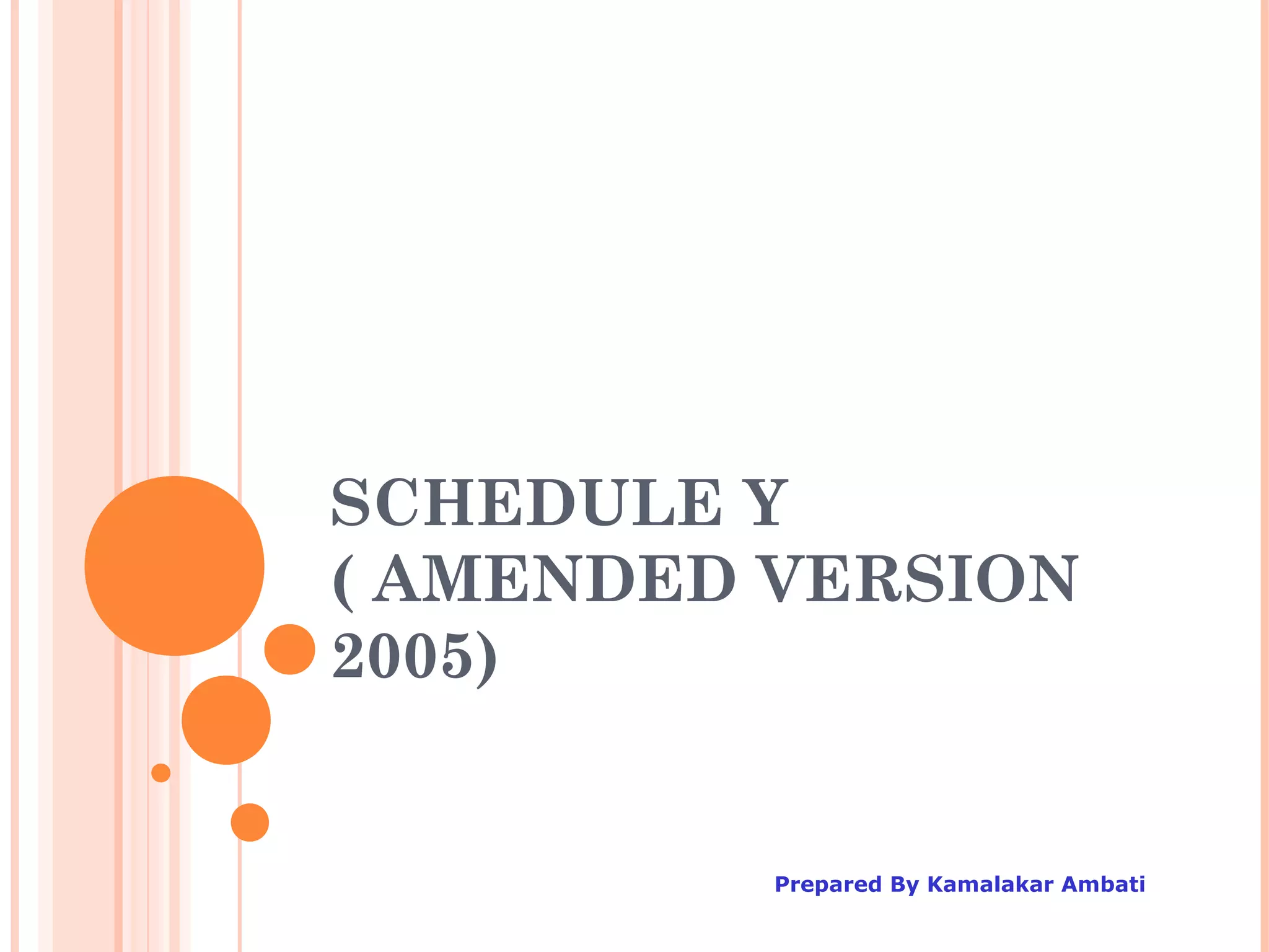 The document outlines the regulatory framework for clinical trials in India, specifically focusing on Schedule Y, which guides the permission process for importing and manufacturing new drugs and conducting clinical trials. It highlights the roles of the Drugs Controller General of India (DCGI), the organizational structure, and the requirements for clinical trial applications, including ethics committee approvals and classifications of trials. Additionally, the document discusses proposed changes made to Schedule Y from its 1985 version to the amended 2005 version, emphasizing the need for stringent protocols and monitoring post-marketing for drug safety.