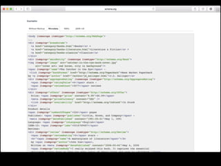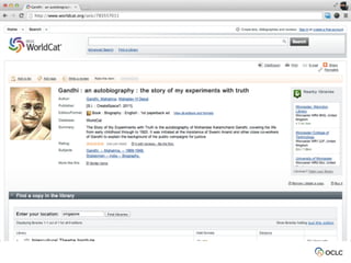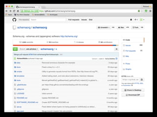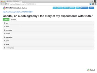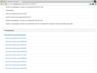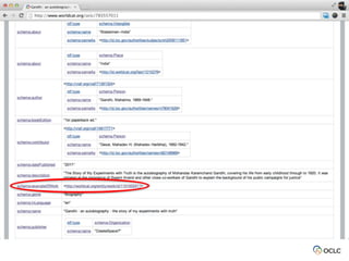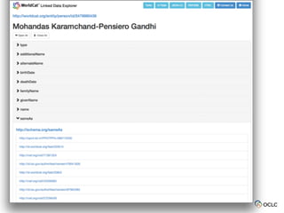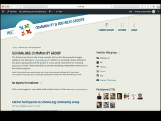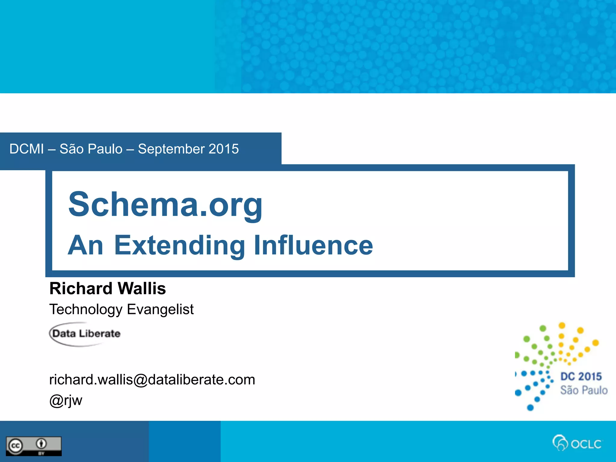 The document discusses Richard Wallis and his work extending Schema.org to better describe bibliographic data. Wallis is an independent consultant who chairs several W3C community groups focused on expanding Schema.org for bibliographic and archives data. He has worked with organizations like OCLC and Google to develop vocabularies that extend Schema.org to describe over 330 million bibliographic resources in linked data.