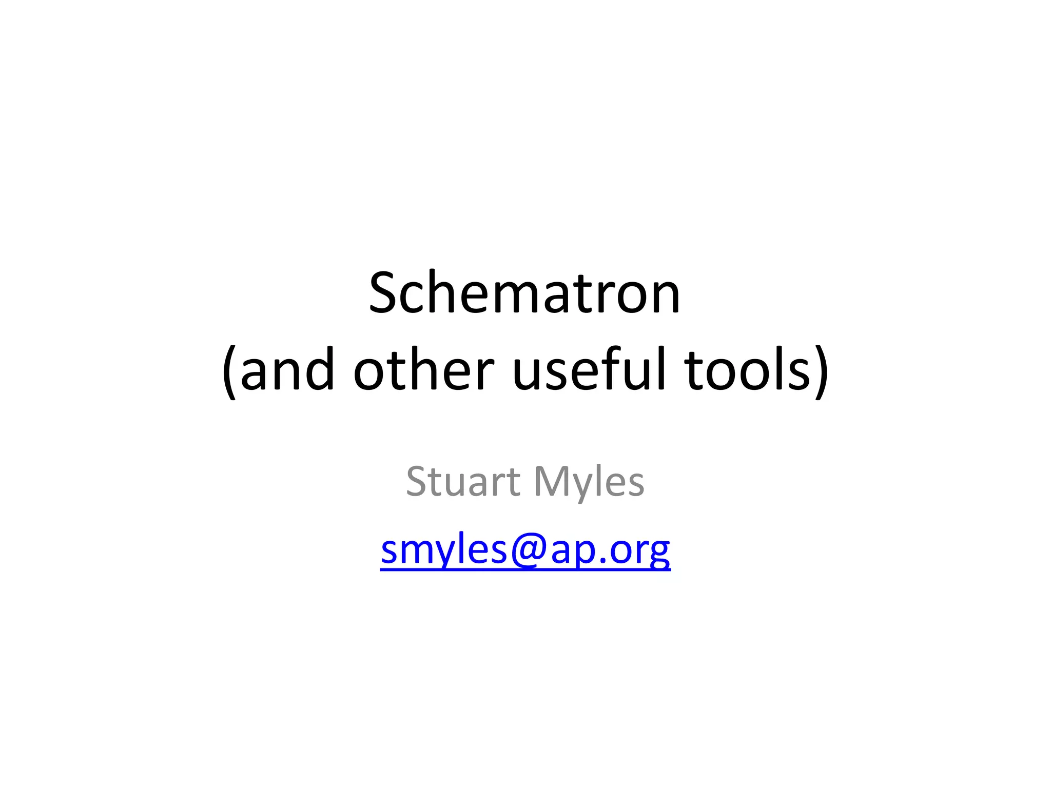 This document discusses AP's content ingestion pipeline and how they use various open source tools like Schematron, HTML Tidy, and XML validation to clean up and validate content before ingestion. Schematron in particular allows them to check for business rules that can't be expressed in an XSD schema. This validation step catches errors before content is approved and ingested, reducing risks of issues appearing later in downstream systems. The document provides an example of a Schematron rule and explains how Schematron works by compiling rule specifications into XSLT transforms to validate documents. It also briefly mentions the DSDL standard for declaratively specifying validation pipelines.