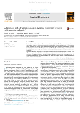 This document summarizes the relationship between attachment, helplessness, panic, and schizophrenia. It discusses how attachment theory explains the occurrence of panic states due to feelings of helplessness caused by separation from an attachment figure. Feelings of helplessness can disrupt the development of self-consciousness and cause experiences of annihilation, derealization, and depersonalization. Disturbances in self-consciousness are central to schizophrenia and can also cause feelings of panic and helplessness. The document proposes that there is a two-way relationship between panic and imbalanced self-consciousness, with helplessness in between. This may help explain the high rates of panic disorder comorbidity in schizophrenia.