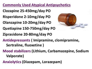 3) Etiology may include biological, genetic, developmental, and environmental factors. Treatment involves antipsychotic medication which can cause side effects.