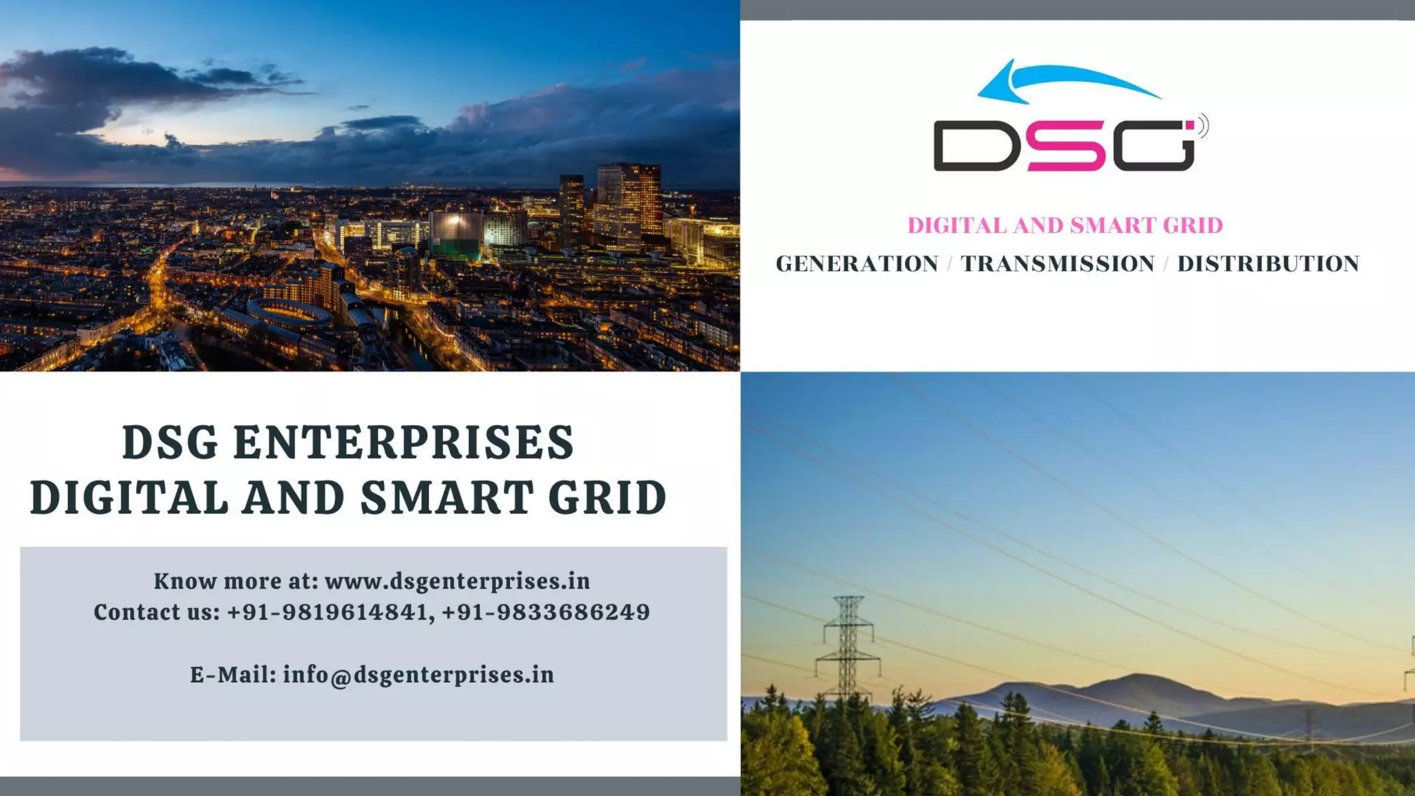 Digital And Smart Grid Enterprises is a sole proprietorship company that trades automation controllers, digital grids, protection relays, and other equipment. It aims to provide reliable customized solutions for smarter grid systems from generation to distribution using digitization, expertise, and collaboration. The company works with utilities, OEMs, industries, and other organizations to provide solutions and services related to numerical relays, substation automation systems, and more. It offers MiCOM protection relays from Schneider Electric that provide functions such as feeder protection, transformer protection, motor protection, generator protection, line protection, and more.