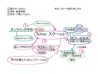 schoo WEB-campusは「WEBに誕生した、学校の新しいカタチ」。 WEB生放送の授業を無料で配信しています。 ▼こちらから授業に参加すると、先生への質問や、ユーザーとのチャット、資料の拡大表示等が可能です。 https://schoo.jp/class/107/room