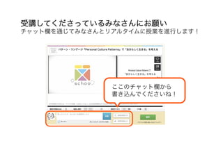 ーーーーーーーーーーーーーーーーーーーーーーー schoo WEB-campusは「WEBに誕生した、学校の新しいカタチ」。 WEB生放送の授業を無料で配信しています。 ▼こちらから授業に参加すると、先生への質問や、ユーザーとのチャット、資料の拡大表示等が可能です。 https://schoo.jp/class/664/room ーーーーーーーーーーーーーーーーーーーーーーー