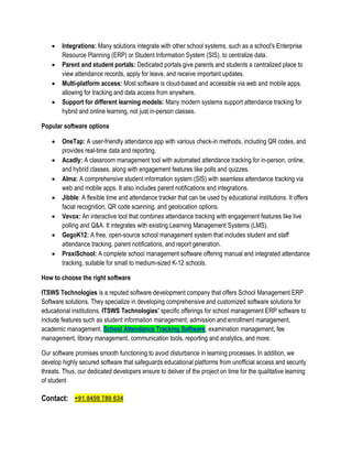 educational institutions. ITSWS Technologies' specific offerings for school management ERP software to