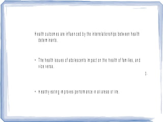 2) Personal, social, cultural and environmental factors influence health behaviors and choices around nutrition and physical activity.