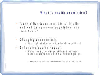 3) Individual, group and community actions that promote health strategies can address inequities and promote well-being and safety.