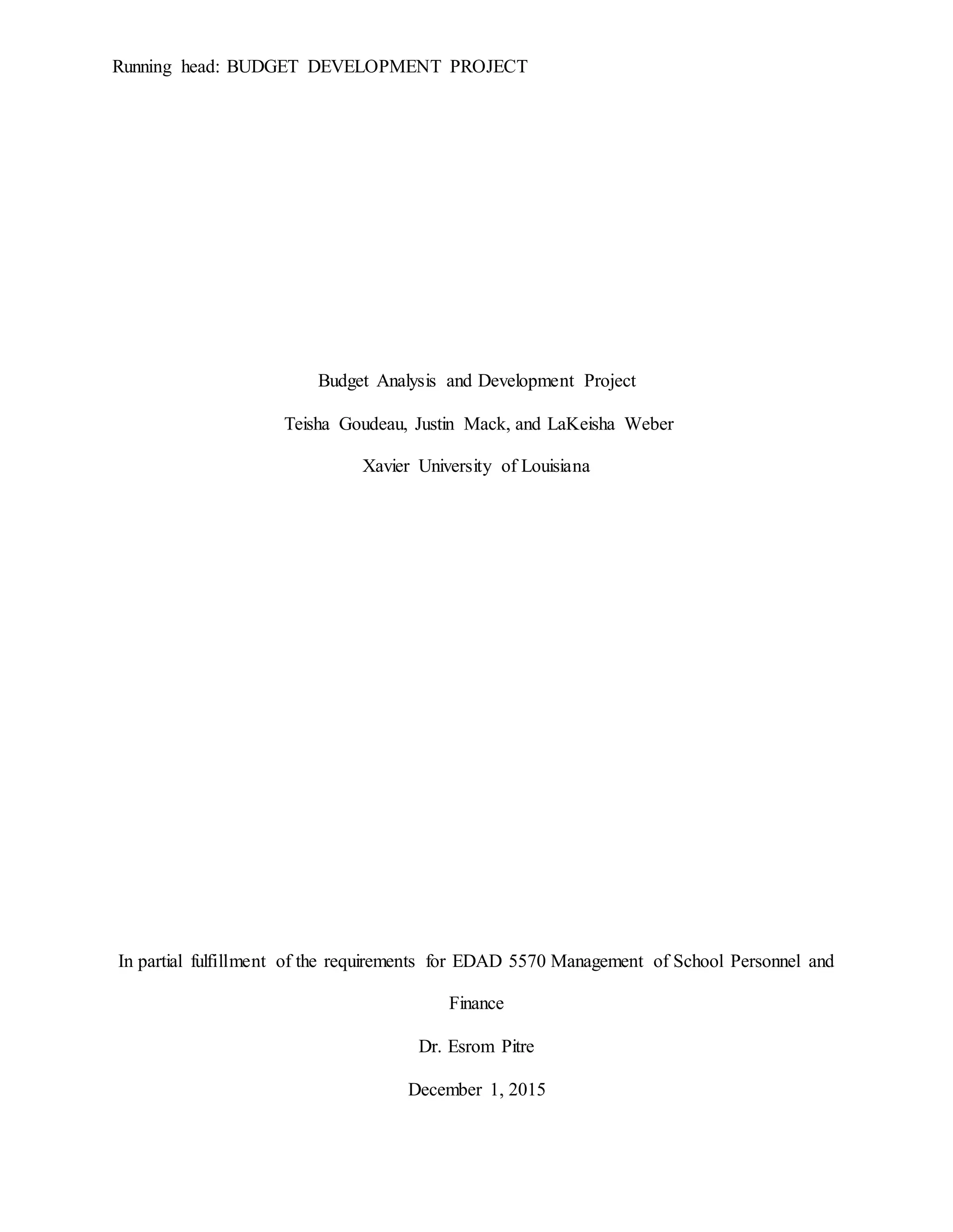 This document outlines the budget development project for Wade High School, emphasizing the need to align budgetary decisions with the school's mission of providing rigorous education to economically disadvantaged students. It includes an analysis of district demographics, a comprehensive needs assessment of students' academic performance, and strategies for improving educational outcomes through targeted reforms and resource allocations. Key initiatives involve professional development for teachers, data-driven instructional strategies, and recruiting highly qualified educators to enhance student success.