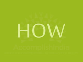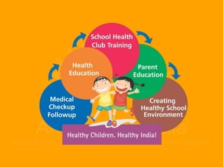 The document discusses the importance of addressing the health needs of children through school health programs, highlighting that untreated medical issues can hinder learning. It describes the benefits of instilling healthy habits in students, which can lead to long-term positive outcomes in education and personal relationships. Accomplish India is a social organization that implements these health initiatives to improve overall school and community health standards.
