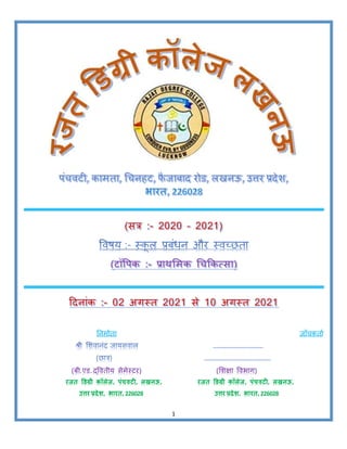 किसी रोगिे होने या चोट लगने पर किसी अप्रकिकित व्यकि द्वारा जो सीकित उपचार किया जाता है उसे प्राथकिि