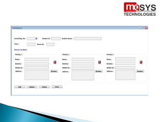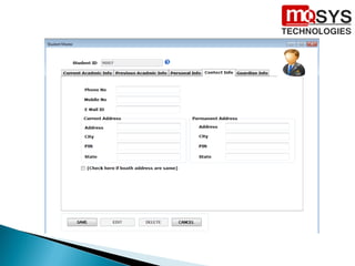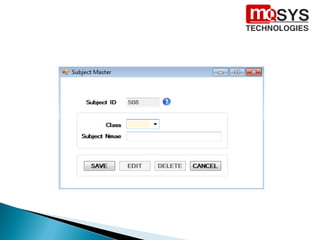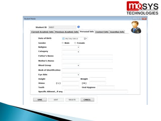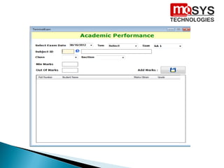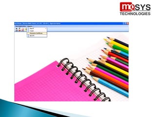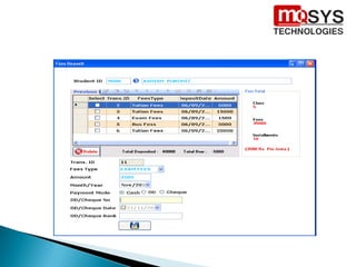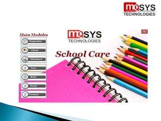 The document outlines an integrated education resource planning system that boasts features such as comprehensive student records management, teacher performance records, and high-security measures. It emphasizes benefits including improved decision-making, resource utilization, and the ability to export reports in various formats. Key modules include registration, library, attendance, fee processing, marks tracking, hostel, and transport management.