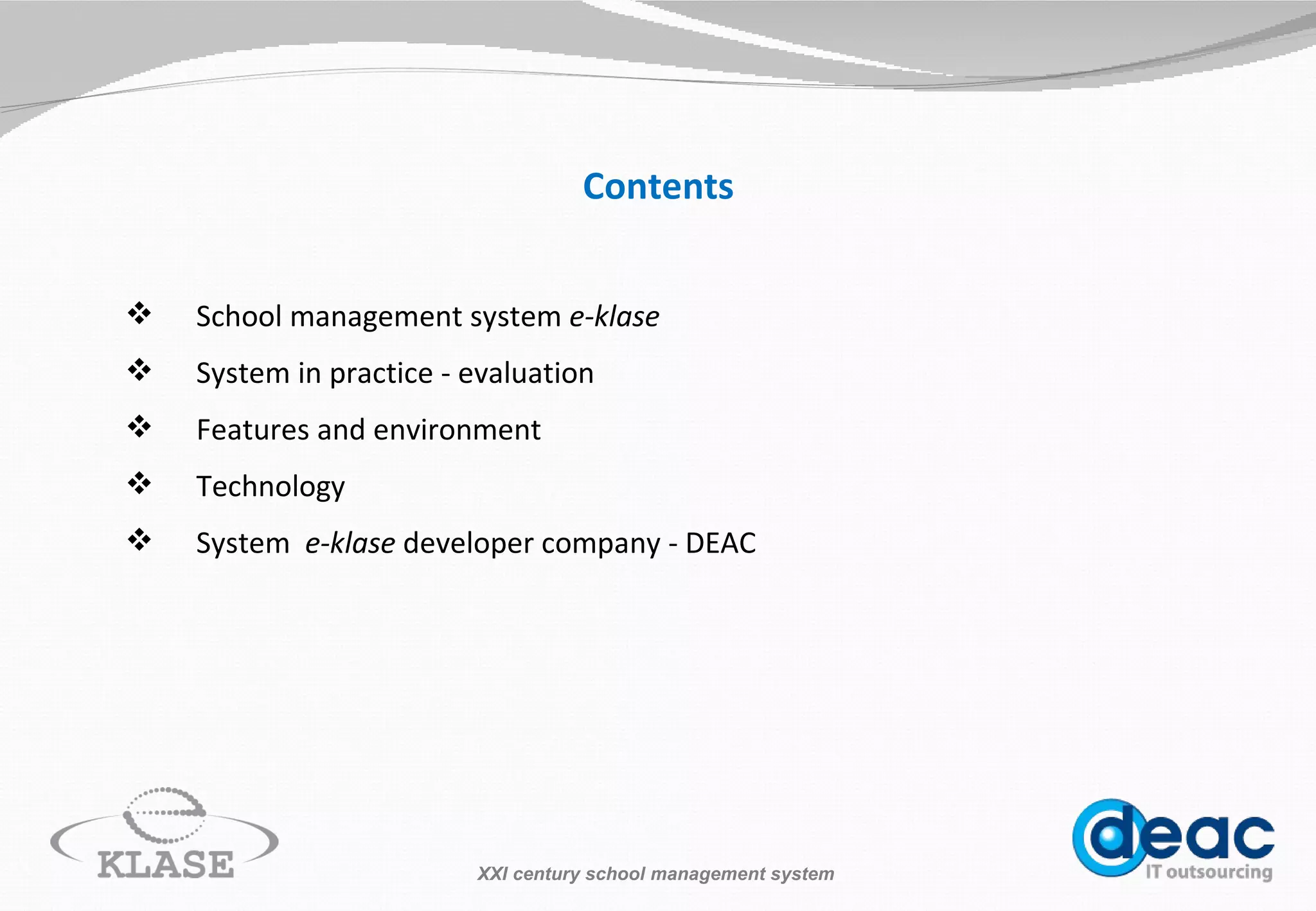 - E-klase combines educational needs and allows information exchange between teachers, parents, and students.