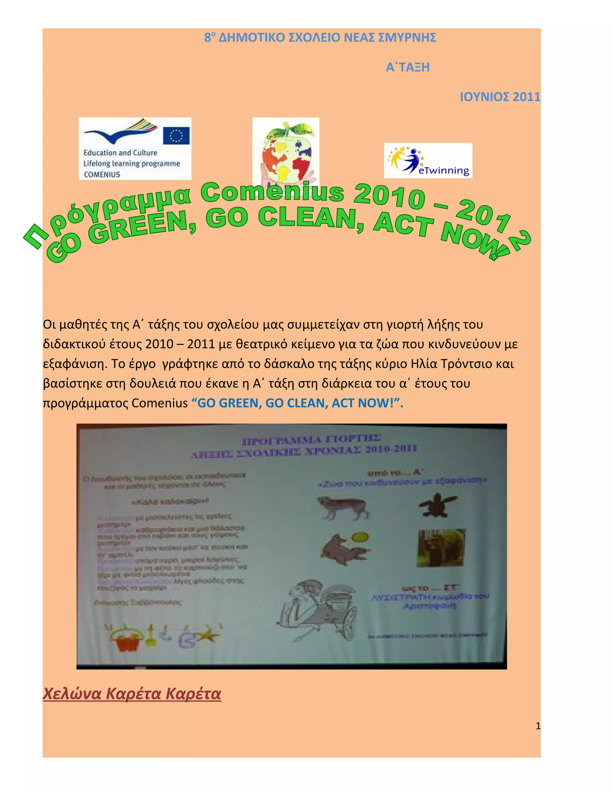 προγράμματος Comenius “GO GREEN, GO CLEAN, ACT NOW!”.