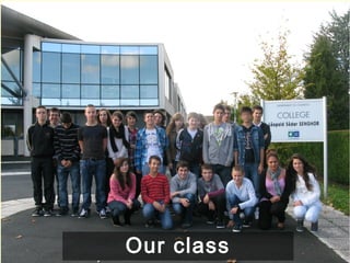 Senghor Junior High School was built in 2004 and has around 630 students and 60 teachers. The school has classrooms for subjects like French, English, maths, sciences, history, geography, music, art, ICT, and PE. In the afternoon, students have 3 or 4 more periods of class. Students have a busy schedule from 8:15am to 5pm each day, with a morning and afternoon break. After school, students must do homework to prepare for the next day of classes.