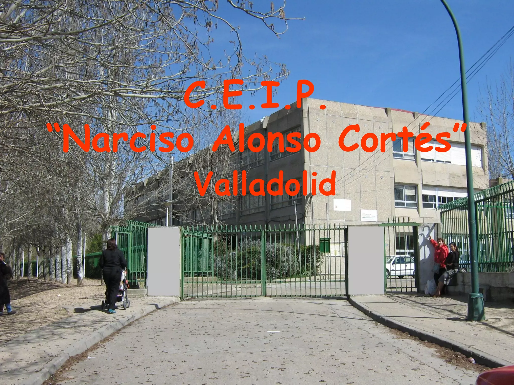 This document provides information about the C.E.I.P. "Narciso Alonso Cortés" primary school located in Valladolid, Spain. It details that the school has buildings for primary and infant education, with yards and facilities like a library, computer room, and music room. It notes there are around 120 infant students and 247 primary students, as well as teachers and an active parent association. The school also implements a bilingual Spanish-English curriculum starting in infant education, with subjects like science, art, and literacy taught partially in English to develop bilingual skills.