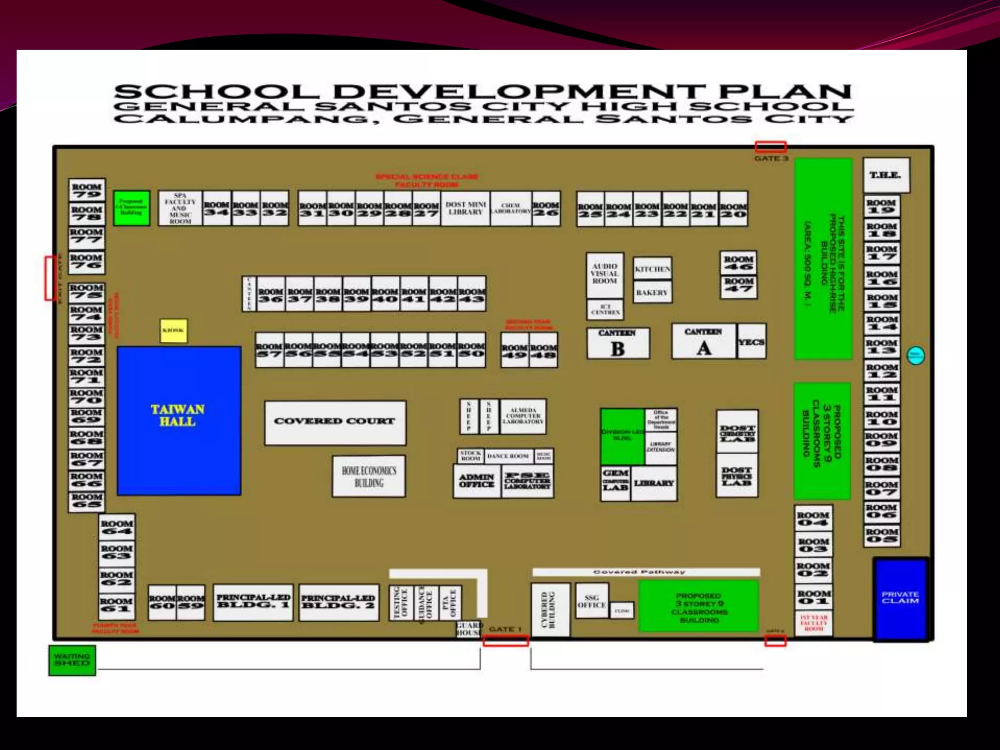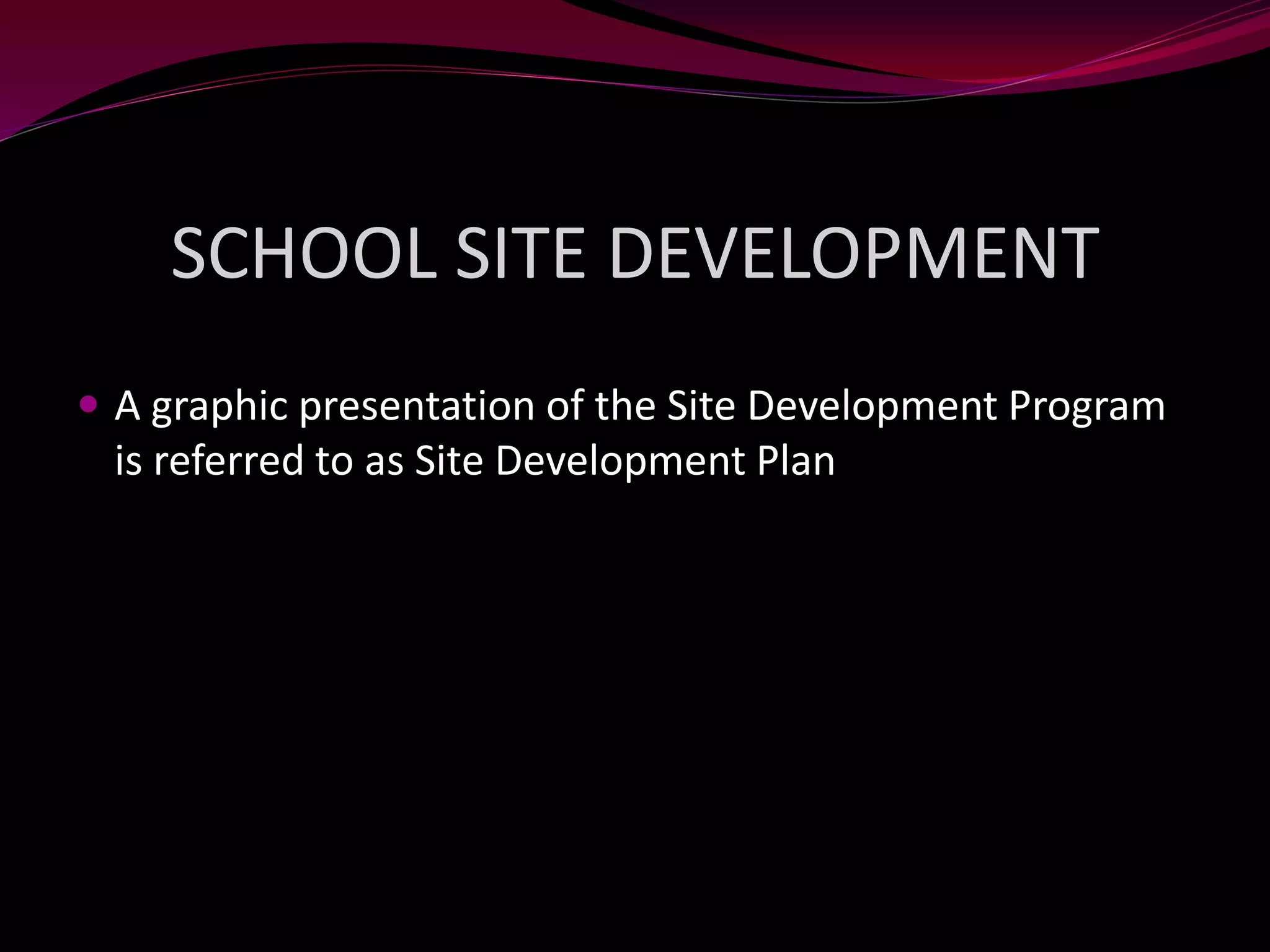 This document discusses principles of school site development planning. It describes how a site development plan is used to layout buildings, structures, and zones within a school based on considerations like sun paths, wind, noise barriers, and open spaces. The purpose is to plan infrastructure and facilities to contribute to a conducive teaching and learning environment. Key areas or zones discussed include visual, physical, functional, agricultural, playgrounds, athletic fields, and evacuation areas.