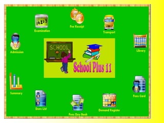 The document discusses School Plus, an ERP software that streamlines fee collection, transportation accounts, and grading for schools, enhancing efficiency and reducing manual workloads. It features customizable fee structures, automated reports, and a grading system compliant with CBSE guidelines for continuous and comprehensive evaluation. Additionally, it improves record-keeping, allows for flexible configurations, and supports both formative and summative assessments, ultimately aiming to increase profitability and operational effectiveness for educational institutions.