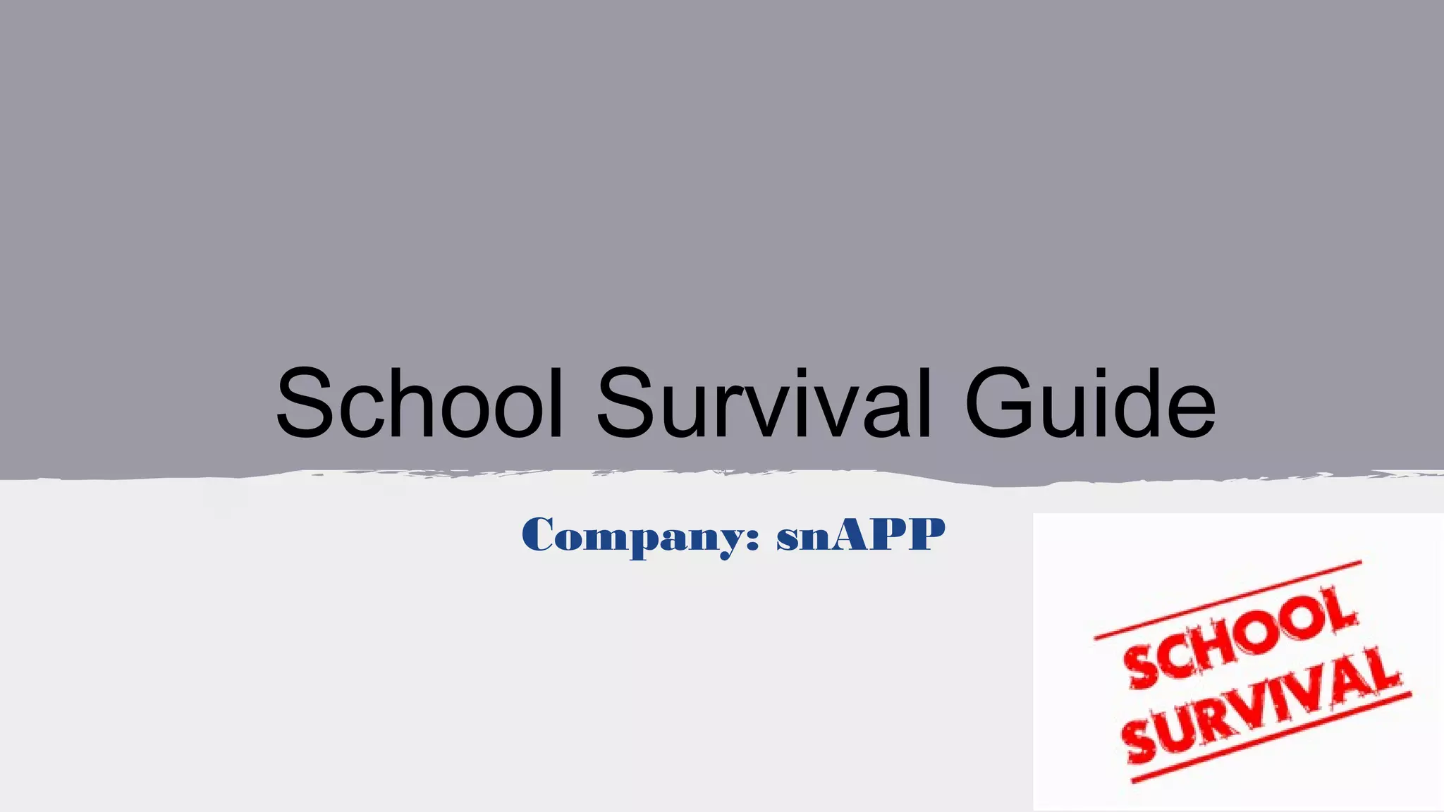 This document provides information about a proposed mobile app called "School Survival" that aims to help students ages 11-18 reduce stress related to exams and school work. The app would provide revision tips, healthy snack options, and links to additional study resources. It outlines the problem of balancing school, family, and social life that many students face. Mock-ups show sample app screens for tips, food/revision suggestions, and navigation. The document discusses testing the app with family members, the MVP user features, a free business model with government funding, and marketing strategies like promoting in schools.