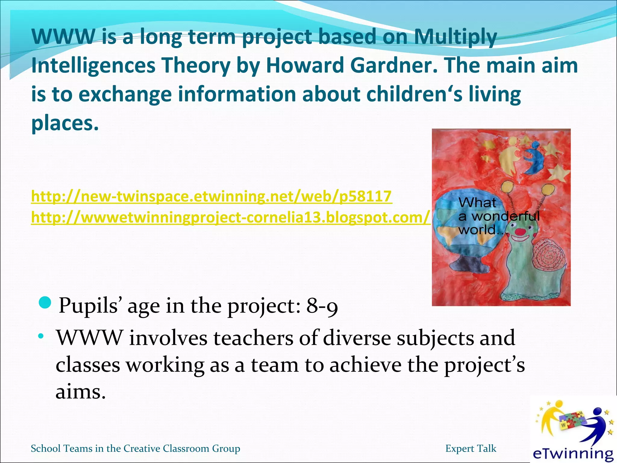 This document summarizes an eTwinning project involving teachers and students from Şcoala Generală Nr.9 ,,Nicolae Orghidan”, Braşov, Romania. The project is based on Howard Gardner's Theory of Multiple Intelligences and aims to exchange information about the children's living places. It involves 3 teachers and 52 students aged 8-9 years old. The teachers work as a team, with each taking on different roles according to their interests and skills. They collaborate to complete tasks and achieve the project's goals. Working as a team provides advantages like making the work more motivating and achieving knowledge, but can also lead to disadvantages like clashing personalities or lack of communication if not managed