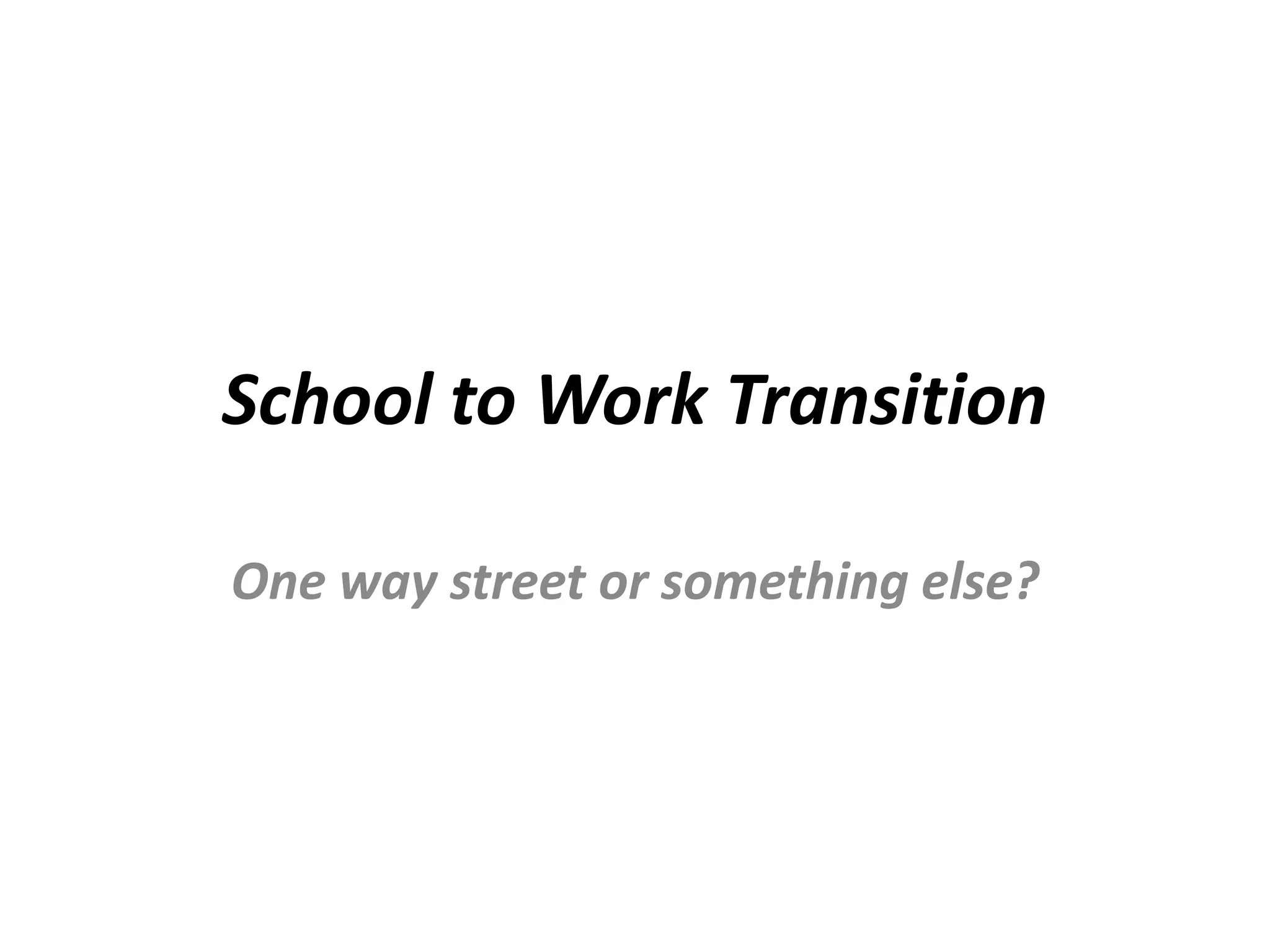 Educators were interviewed to discuss the transition from school to work. While educators felt they were not responsible for finding students jobs, they saw the purpose of education as helping students learn and mature. Educators viewed school and work as similar in that both involve being assigned tasks and being rewarded or punished based on performance. They also felt that with advancing technology, the lines between school and work are blurring, allowing for more concurrent learning.