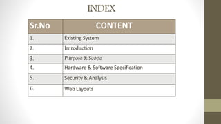 The document is a project report detailing the development of the Mount Litera Zee School Management System, aimed at automating the admission process and managing school operations online. It provides functionalities for parents and students to submit and download admission forms, while enabling administrators and employees to manage various school details, attendance, and resources efficiently. The system is designed to reduce paperwork and streamline processes through a web-based application, utilizing specified hardware and software specifications.