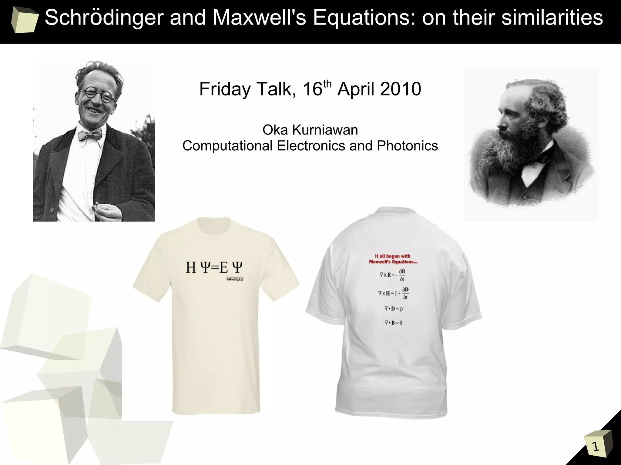 1) Schrödinger's equation for electrons and Maxwell's equations for photons describe wave-like behavior and have similar forms.