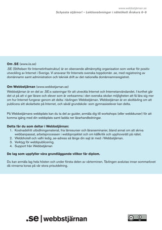 I arbetet med Internet och webbpublicering i skolan så kommer du som lärare i kontakt med frågor som: Hur ska man vara mot andra på nätet, hur ska man "prata" på nätet, vad får och får man inte göra på nätet? Frågor som rör nät-etikett. På Webbstjärnan har vi tagit fram ett lektionsmaterial som du som lärare kan använda tillsammans med dina elever för att arbeta och prata om frågor som rör just nät-etikett, och ni får verktyg för att bli schyssta stjärnor på nätet. - See more at: http://www.webbstjarnan.se/hur-gor-man-webb/ladda-hem-material/bli-en-schysst-stjarna-pa-natet-lektionsmaterial-kring-natetikett/#sthash.pT2kmdmz.dpuf