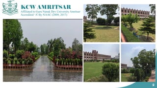 Khalsa College for Women, Amritsar, established in 1968 and affiliated with Guru Nanak Dev University, aims to provide holistic and skill-based education to enhance students' employability and global competitiveness. The college offers a wide range of undergraduate and postgraduate programs across various disciplines, including science, commerce, humanities, and vocational training, and emphasizes ethical values, technological advancement, and collaboration with industry. Recognized for academic excellence, it has received multiple accolades, including NAAC accreditation and is ranked among the top educational institutions in India.