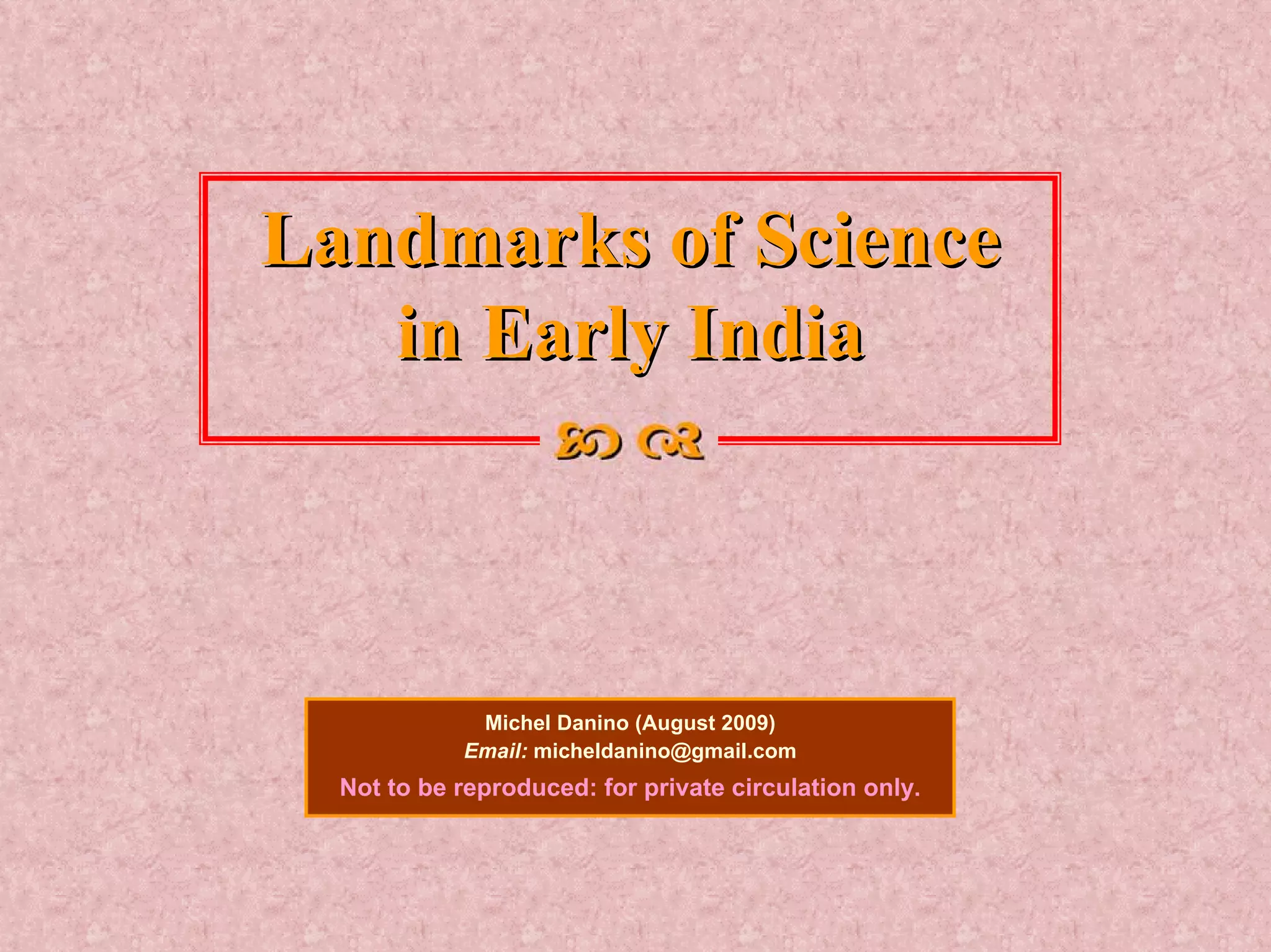 This document provides an overview of key landmarks and developments in science and technology in ancient India, beginning with the Indus-Sarasvati civilization. Some highlights include: