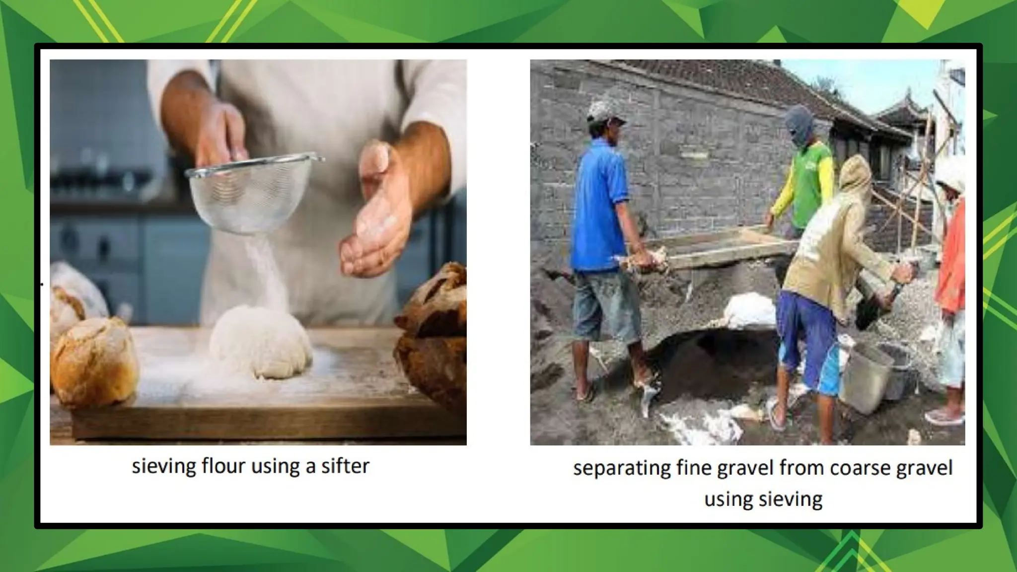 below show the process of sieving.