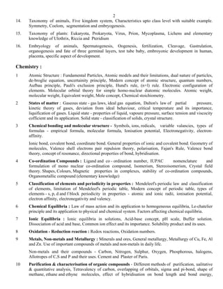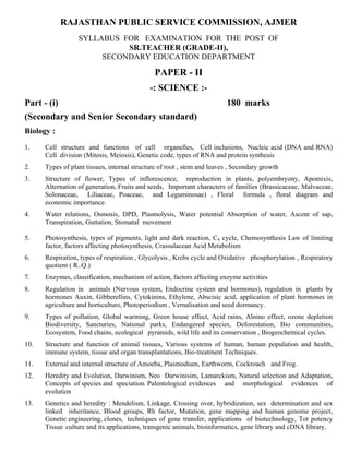 It outlines the topics to be covered in Paper II - Science, which is divided into two parts. Part I covers topics in biology, chemistry, and physics at the secondary and senior secondary level. Part II covers more advanced topics in biology, chemistry, and physics at the graduate level.