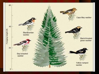 1) The document discusses biological diversity and interdependence between species within an ecosystem. It defines key terms like niche and different types of symbiotic relationships between species like mutualism, commensalism, and parasitism.