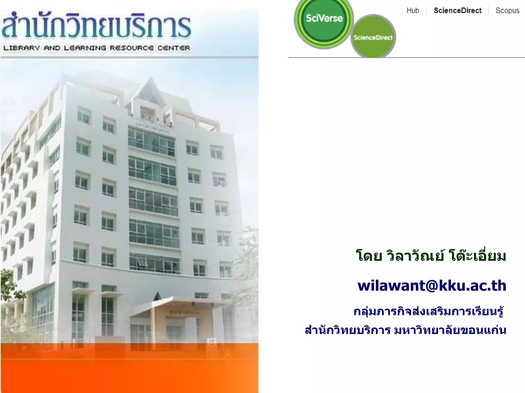 รายละเอียดฐานข้อมูล คลอบคลุมบทความวารสารสาขาวิทยาศาสตร์ เทคโนโลยีและการแพทย์ จำนวนกว่า 1,800 ชื่อของสำนักพิมพ์ Elsevier Science, Academic Press และสำนักพิมพ์อื่นๆ รวมทั้งวารสาร Reviews จำนวนกว่า 6.2 ล้านระเบียน สามารถเข้าใช้ฉบับเต็มได้เกือบทุกชื่อ ตั้งแต่ปี 1995- ปัจจุบัน สืบค้นได้ที่ URL : http :// www . sciencedirect . com หรือ http :// www . library . kku . ac . th / e - journal / ฐานข้อมูล ScienceDirect - 3.