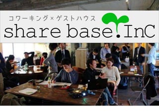sharebase.InCの.InCは.(ドット=豆粒)みたいな僕たちがInnovation(I) and Creation(C)をできるように、と思って作った共有できる基地です。2012年からやってますが、具体的にどういう価値観で動いているのかを知っていただくためにプレゼンしたのを保存しましたので、興味持った方は是非LINE@で「資料見ました!」といって絡んでいただければ!