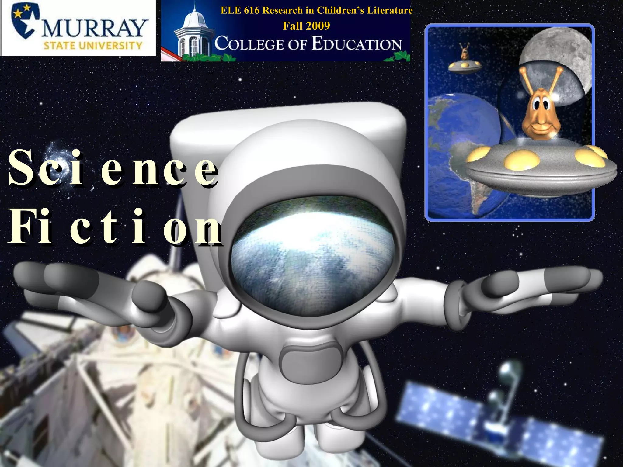 The document discusses definitions of science fiction from various science fiction authors and sources. Isaac Asimov defines science fiction as literature concerned with the impact of scientific advance on humans. Ray Bradbury sees science fiction as sociological studies of the future based on extrapolating current trends. John Scalzi outlines three criteria for science fiction: it takes place in the future or what was the future when written, uses technology that did not exist at the time, and events are rationally based. The document also explores the relationship between science fiction and scientific literacy as well as the differences between science fiction and fantasy.